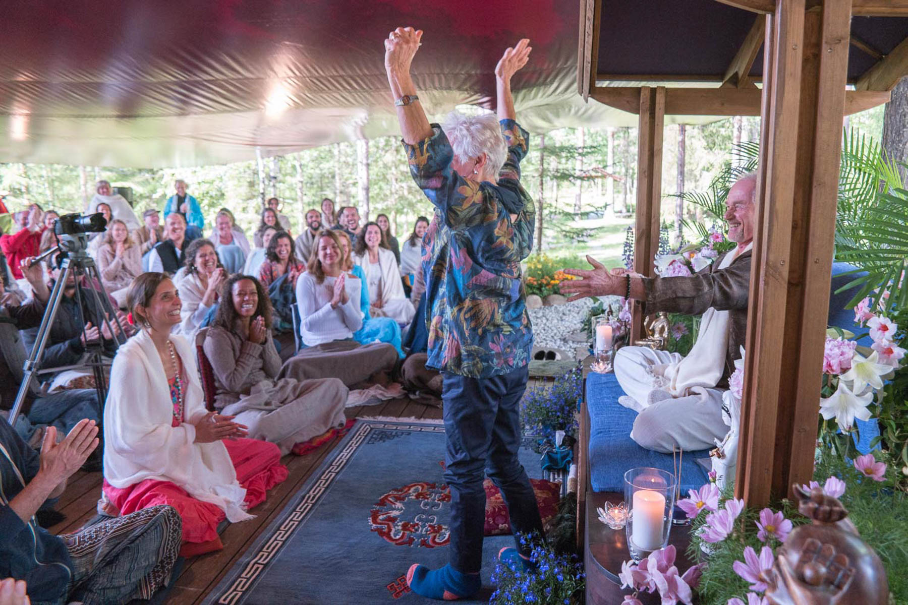 Together, once more at the feet of our Beloved, taking part in this beautiful song which is to be in the presence of an alive Master. He who plays the strings of our heart and soul, creating a resonance within us with all the mystery and the beauty of life.